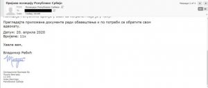 MUP poziva kompanije i građane da, ukoliko dobiju takvu elektronsku poruku, to prijave Odeljenju za suzbijanje visokotehnološkog kriminala na i-mejl adresu [email protected].