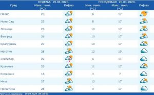 Izgledi vremena u Srbiji za narednih sedam dana – do 26. aprila