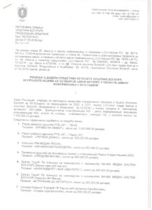 Od namenjenih 7.000.000,00 dinara,2.000.000,00 din.je podeljeno mačvanskim medijima, a preostalih 5.000.000,00 din. je dodeljeno i to u Šabac 3.350.000,00 din. Aranđelovac 350.000,00 din,i Beograd 1.300.000,00din.Možete se i sami uveriti u sledećem rešenju