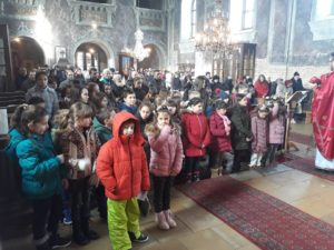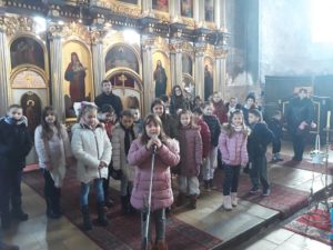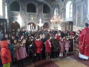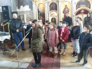 У мрачном периоду средњег века на Балкану засијала је светлост која је показала пут којим српски народ треба ићи. То је пут који се није градио каменом који ће одолети зубу времена. Тај пут показује пролазност земаљске славе, сјаја царских двора и владарских почасти. То је пут који води у непролазно Царство Христово. Онај ко је засијао и постао српски путеводитељ на том путу био је скромни младић владарског рода Свети Сава. Владарски син пролазне земаљске славе, бира пут непролазне небеске славе. Одлучан у ономе што је наумио, а то је просвећење и освечење српског народа, државе и српског националног бића. Недовољно је било историјско и биолошко постојање без везивања за оно Небеско, а Свети Сава је тога био свестан. Раздвојио је светлост од мрака тог времена и почео градити српску државу и хришћанском речју натапати српско национално биће науком Христовом, а државу градећи на хришћанским темељима. Првенствено подизањем духовности и народне свести о њеним непролазним вредностима. То је било могуће подизањем мноштва манастира, цркава, школа, болница и других културних чинилаца тог времена. Била је то револуционарна изградња српског народа тог времена. Градио се прави систем непролазних вредности које су биле уграђене у сваки део народне делатности. Тековине тог времена трају до данашњих дана. Само се поставља питање, да ли смо спремни излечити своје духовно слепило пред духовним благом којим смо окружени. Дошло је време духовног буђења и лечења од духовног слепила да будемо достојни светосавског духа наших предака. Поводом тога смо се окупили у храму Рођења Пресвете Богородице у Богатићу да нам Бог да снаге и благослова да оживимо дух Светосавља и да прославимо нашег светитеља. На Светој Литургији био је присутан велики број верног народа и деце. Деца су активно учествовала на богослужењу певајући јектеније и химну Светом Сави. А након Свете Литургије деца су рецитовала песме посвећене Светом Сави. Труд деце свештенство храма даровало је пригодним поклонима. Изаберимо да не ходимо путевима таме него да будемо деца светлости. Достојни личности и дела Светог Саве. Надамо се да ће нас следеће године бити још више подстакнути клицањем нашем светитељу „Ускликнимо с љубављу!“