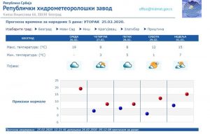 U četvrtak će biti oblačno, vetrovito i hladnije sa kišom, u brdsko-planinskim predelima sa snegom uz umeren i jak severozapadni vetar. Pre podne na severu, a do kraja dana i u ostalim krajevima kratkotrajno razvedravanje uz slabljenje vetra.